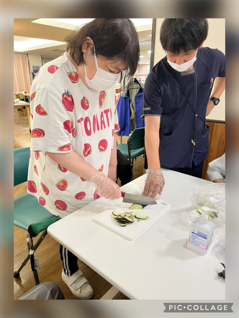 余ったナスを持ち帰り、自宅でご家族様と「浅漬けを我が家風で作ったよ」とデイの活動が自宅での活動参加の機会となっている方もいます。
