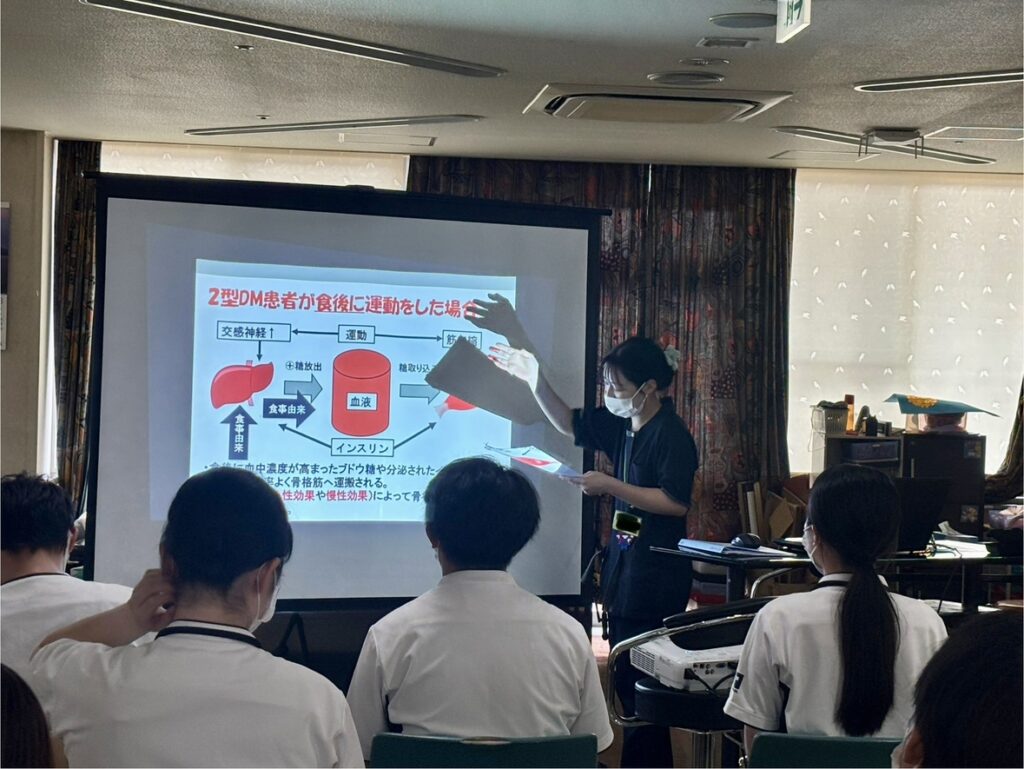 今回は、糖尿病のメカニズムについてのお話しと治療の3本柱、リハビリ時の注意などについての内容でした。
